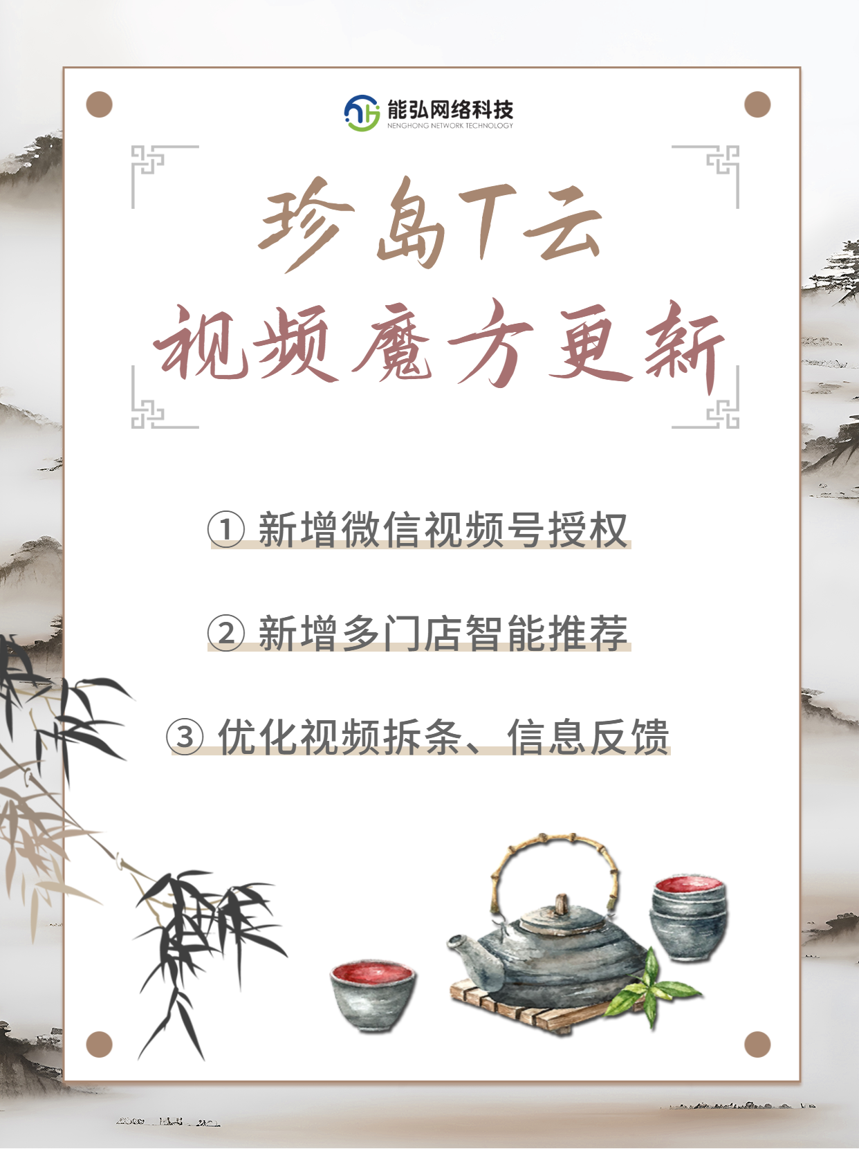 在普通尋常的一個午后,能弘網絡科技卻不尋常的更新了我們的T云后臺,新增了一些實用功能,也優化了一些原有功能,讓我們來看看這次新增優化了哪些功能吧。