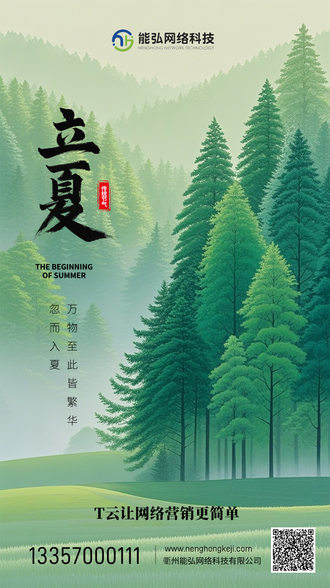 立夏(xia)(xia),是一個承(cheng)載著(zhu)自然(ran)變(bian)化與文(wen)化傳(chuan)承(cheng)的(de)重要時節。在(zai)這個充滿生(sheng)機(ji)的(de)季節,我們不(bu)僅(jin)要感(gan)受大(da)自然(ran)的(de)饋贈,更要懂得珍惜和傳(chuan)承(cheng)中華優(you)秀(xiu)傳(chuan)統文(wen)化。通過(guo)衢(qu)州能弘網(wang)絡科技有限公司的(de)努力,讓我們一起在(zai)這個立夏(xia)(xia),領悟二十四(si)節氣之美,傳(chuan)承(cheng)文(wen)化精髓,共同迎接(jie)一個充滿希望的(de)夏(xia)(xia)天。讓我們在(zai)這個時節,關注自然(ran),關注生(sheng)活,關注心靈的(de)成長。