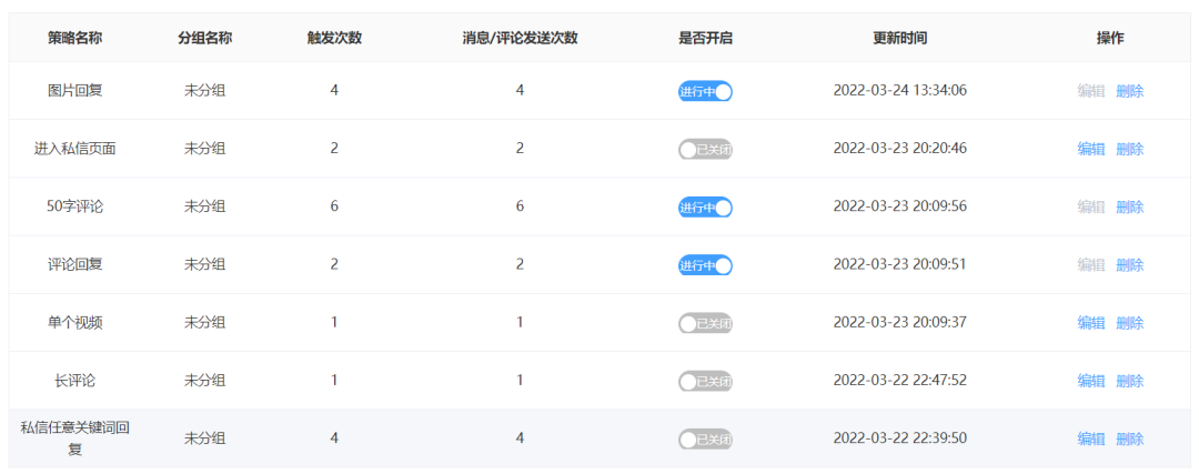 在視頻魔方上,用戶的評論/私信信息可以實時反饋,商家的回復策略自動運行,全程無需人工參與,很大降低人力成本。