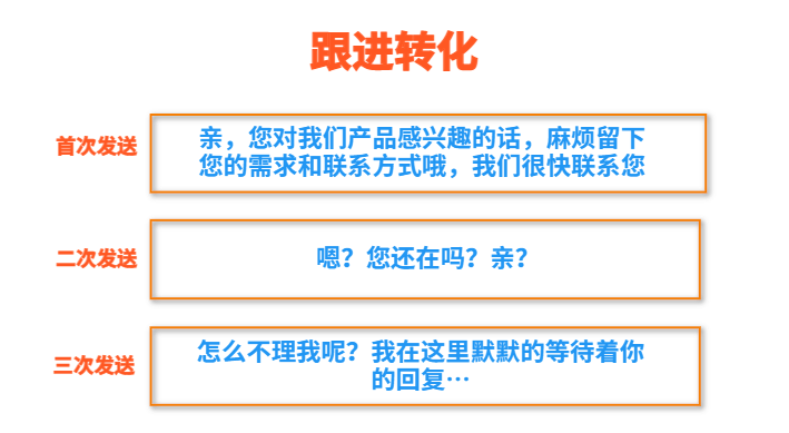 通過多次反復的觸達意向用戶,用不同的話術內容,來提高意向用戶的轉化率。