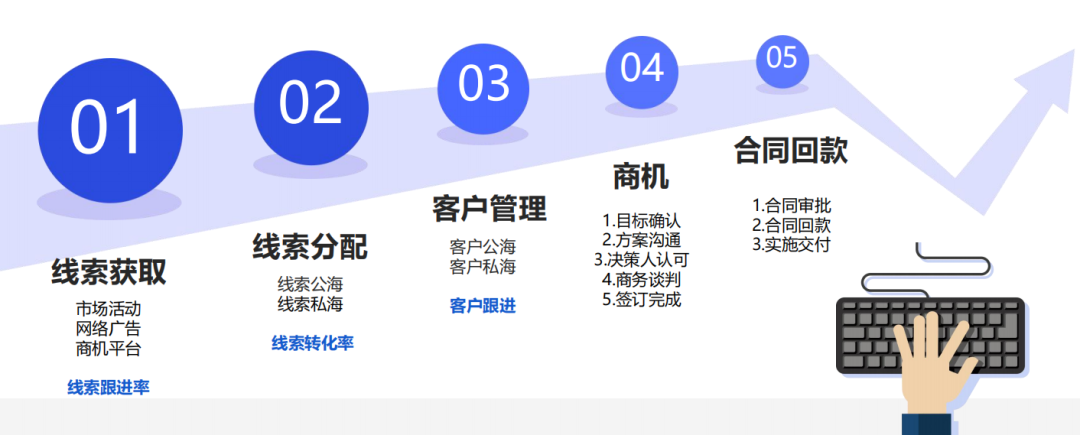 在數字技術的加持下,數字化管理為企業提供了一個提高運營效率和利用市場增長的機會。正如T云臻管家,從線索獲取→線索分配→客戶管理→商機→合同回款到數據分析,全周期高效運轉,實現業務流程線上化、智能化、自動化,助力企業全流程高效管理客戶。