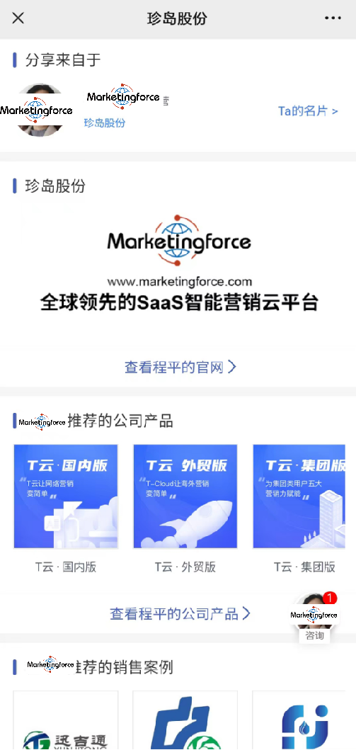 使用T云臻推寶內置的海量文章:每日時事、熱點資訊等,一鍵轉發給客戶,或者轉發到朋友圈,自動附帶上員工名片二維碼,和公司官網、產品、案例、宣傳冊等內容,作為移動的廣告牌進行全網宣傳。