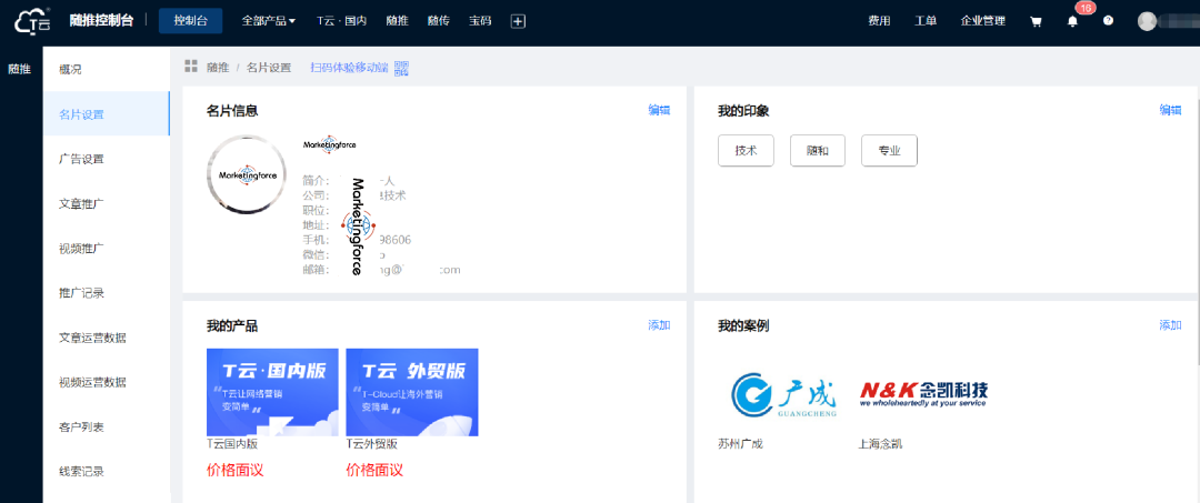 使用隨推的個人名片微站功能,可以將員工個人信息、品牌介紹、公司業務、